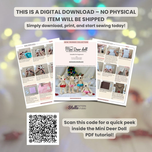 Sew your own Milo and Luna, two tiny deer from the Mini Friends Collection. These soft 5.5–6 inch dolls are beginner friendly, easy to sew, and perfect for gifting or play. The PDF pattern is written in simple language with clear photos, helpful tips, and video guides for the tricky steps. Each Mini Deer comes with underpants, a tiny embroidered heart, and two face options so you can choose the look you love.