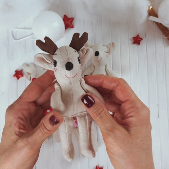 Sew your own Milo and Luna, two tiny deer from the Mini Friends Collection. These soft 5.5–6 inch dolls are beginner friendly, easy to sew, and perfect for gifting or play. The PDF pattern is written in simple language with clear photos, helpful tips, and video guides for the tricky steps. Each Mini Deer comes with underpants, a tiny embroidered heart, and two face options so you can choose the look you love.